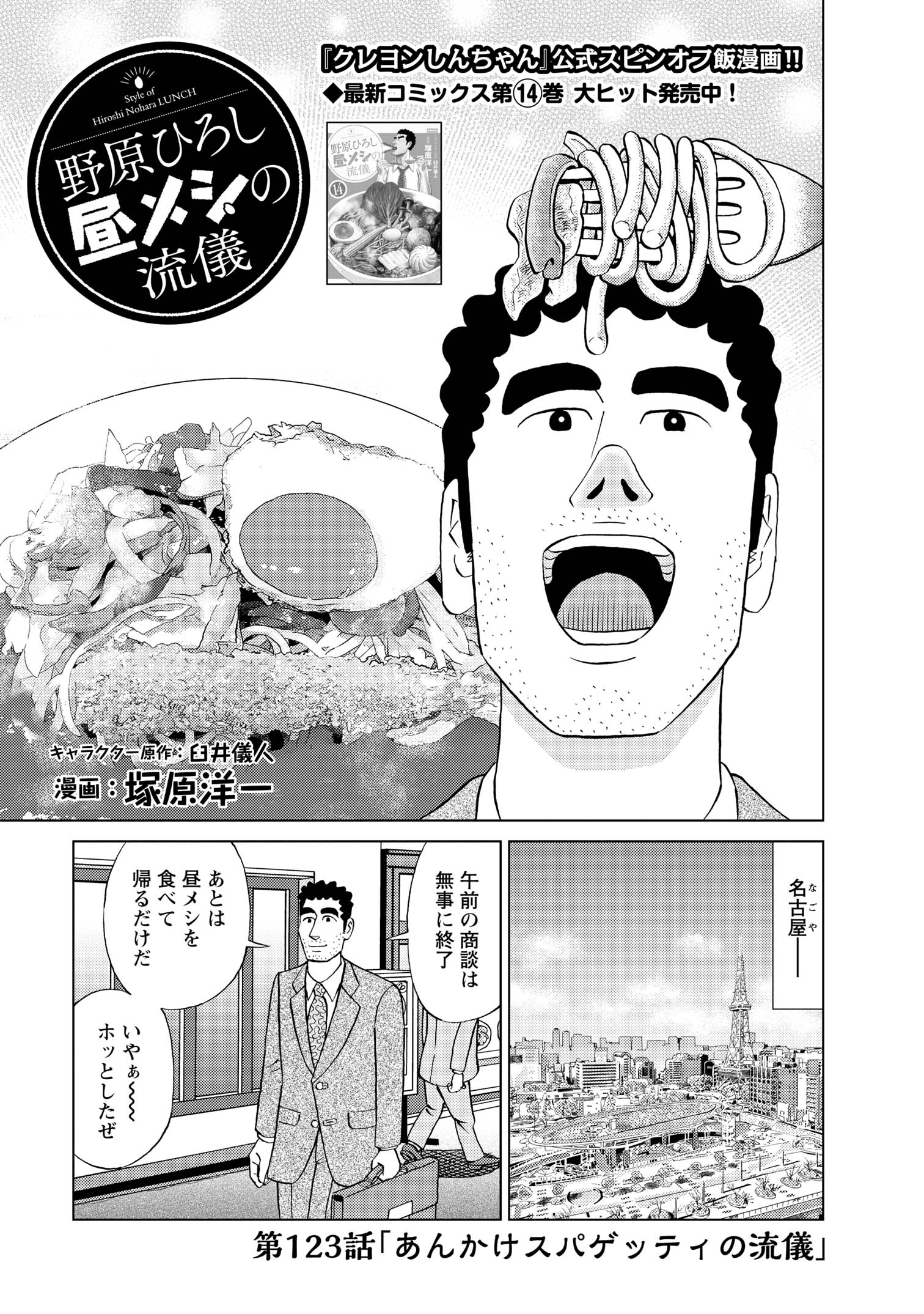全1話公開中! あんかけスパゲッティの流儀 2026.2.14 臼井儀人 / 塚原洋一 ポスト LINEで送る ■野原ひろし 昼メシの流儀最新話 『クレヨンしんちゃん』でおなじみの「父ちゃん」こと「野原ひろし」が主役の公式スピンオフ! 限られたお小遣いをやりくりしながら、こだわりにこだわり抜くひろしの食いざまに、日本中が腹を鳴らす!? 描き下ろし最新話を月イチで、どこよりも早く無料公開!! ひろし ■野原ひろし 昼メシの流儀最新話 購入はこちら 購入はこちら キャラクター原作: 臼井儀人 87年に『だらくやストア物語』が双葉社「週刊漫画アクション」新人賞佳作に入賞しデビュー。90年8月より『クレヨンしんちゃん』を同誌にて連載開始。その他の代表作は『おーえるグミ』『あんBaらんすぞ~ん』『すくらんぶるえっぐ』など。 漫画: 塚原洋一 11月22日生まれ。神奈川県出身。 1986年「モーニング」(講談社)でデビュー。 「月刊まんがタウン」2016年1月号(2015年12月4日発売)より 『野原ひろし 昼メシの流儀』(キャラクター原作:臼井儀人)を連載開始。 Xアカウント→@YoichiTsukahara 「ひろし」の商品を見る