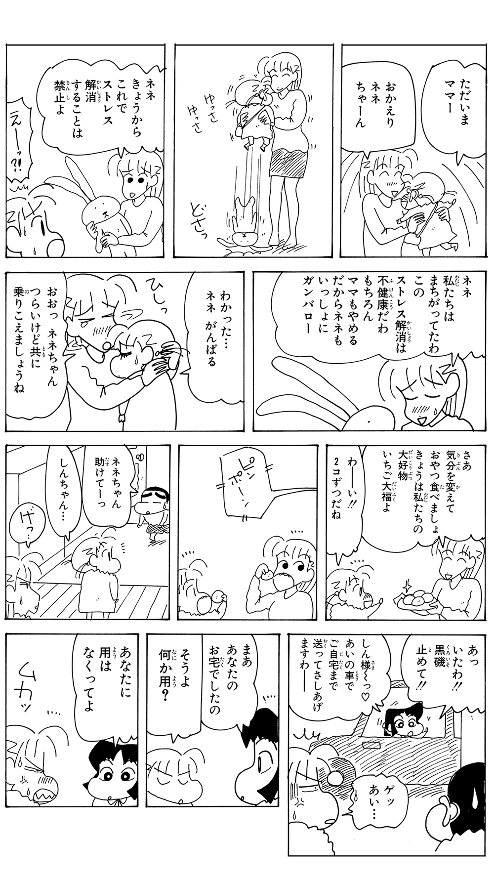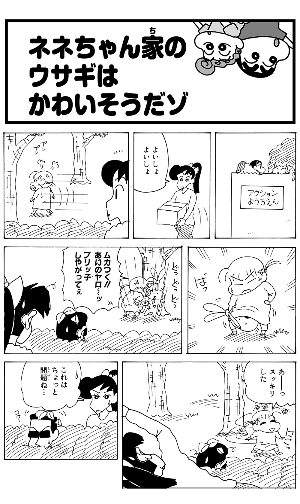 全7話公開中! 449 ネネちゃん家のウサギはかわいそうだゾ 2025.11.25 臼井儀人 ポスト LINEで送る ■ジュニア版クレヨンしんちゃん オリジナルのコミック『クレヨンしんちゃん』全50巻の中から、お子さまにも読みやすいお話をセレクトした再編版! 本記事は「ジュニア版 クレヨンしんちゃん 16」から一部抜粋・編集しました。 しんちゃん ネネちゃん アクション幼稚園 あいちゃん よしなが先生 ネネちゃんのママ ■ジュニア版クレヨンしんちゃん ■【画像】ライバルだゾ!握手を求めるしんちゃん■ ジュニア版クレヨンしんちゃんネネちゃん家のウサギはかわいそうだゾ このお話の単行本を購入 電子コミックストアで購入 原作: 臼井儀人 87年に『だらくやストア物語』が双葉社「週刊漫画アクション」新人賞佳作に入賞しデビュー。90年8月より『クレヨンしんちゃん』を同誌にて連載開始。その他の代表作は『おーえるグミ』『あんBaらんすぞ~ん』『すくらんぶるえっぐ』など。 「しんちゃん」の商品を見る