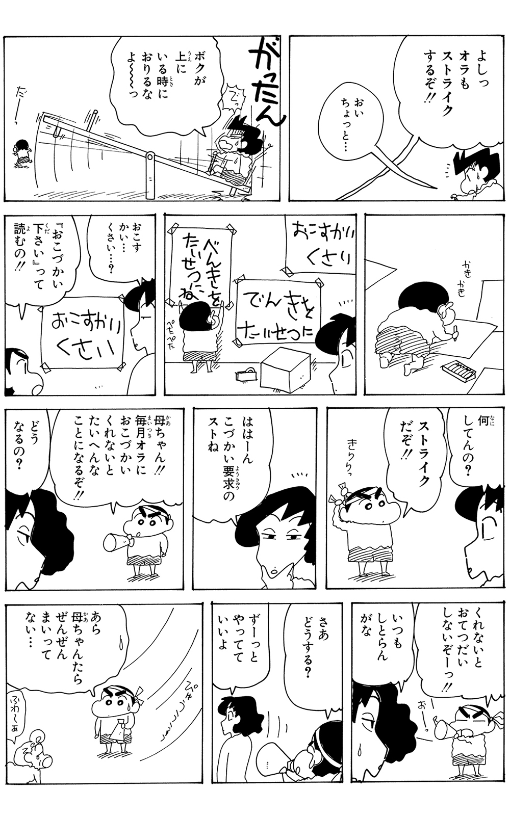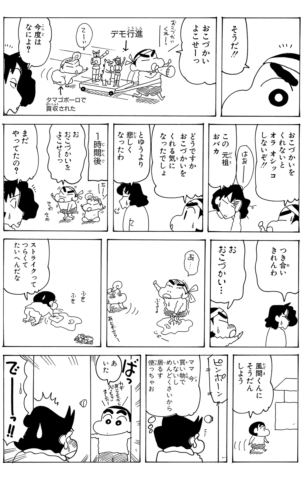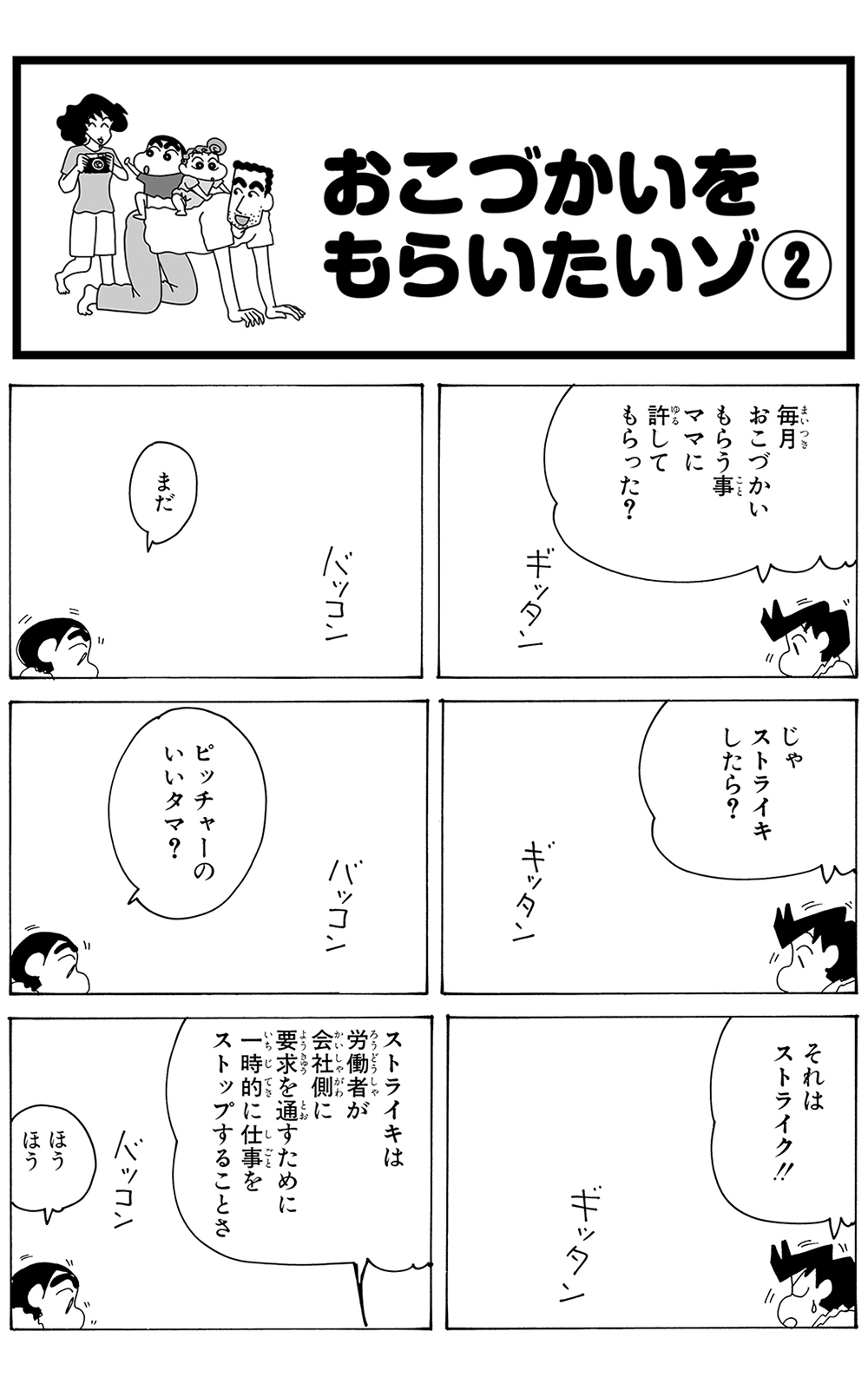 全7話公開中! 450 おこづかいをもらいたいゾ その2 2025.11.26 臼井儀人 ポスト LINEで送る ■ジュニア版クレヨンしんちゃん オリジナルのコミック『クレヨンしんちゃん』全50巻の中から、お子さまにも読みやすいお話をセレクトした再編版! 本記事は「ジュニア版 クレヨンしんちゃん 16」から一部抜粋・編集しました。 野原一家 しんちゃん ひろし みさえ ひまわり 風間くん ■ジュニア版クレヨンしんちゃん ■【画像】暑苦しいゾ…ひろしに抱き着くヨシりん■ ジュニア版クレヨンしんちゃんおこづかいをもらいたいゾ その2 このお話の単行本を購入 電子コミックストアで購入 原作: 臼井儀人 87年に『だらくやストア物語』が双葉社「週刊漫画アクション」新人賞佳作に入賞しデビュー。90年8月より『クレヨンしんちゃん』を同誌にて連載開始。その他の代表作は『おーえるグミ』『あんBaらんすぞ~ん』『すくらんぶるえっぐ』など。 「しんちゃん」の商品を見る